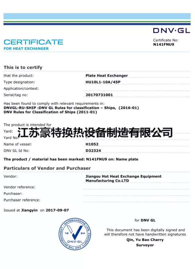 豪特換熱設備作為船舶上的滑油冷卻器、淡水冷卻器、中央冷卻器、柴油機冷卻器、缸套水冷卻器等主要設備,被廣泛的應用在油輪,液化氣船,集裝箱船,散貨 船和工程船上,在船舶的航行過程中起到重要的作用。高腐蝕性,易結垢的海水運行條件考驗了豪特換熱設備的耐腐蝕性和高性能,長時間持續(xù)的運行考驗了豪特換熱設備的安全和穩(wěn)定。